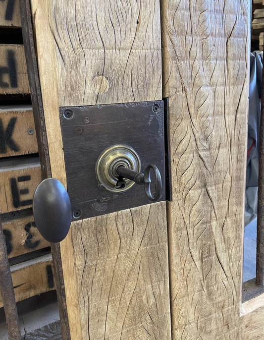 custom set of residential doors in reclaimed 2” x 6” PEROBA